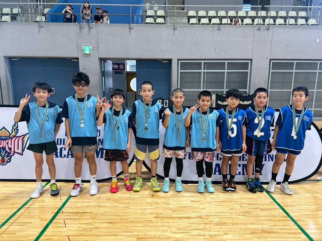 キッズクラスでは、幕開けとなる第1試合目から白熱した試合が続き、同点による延長戦が2試合も起こる拮抗した展開となりました。懸命にボールを追いかける姿、転んでも立ち上がりチームのために貢献する姿には逞しさと成長が垣間見えました。 また、試合に出場していない時でもベンチから立ち上がり、一生懸命に仲間を応援したり、アドバイスを送ったりとチームでハドルを組み協力する姿勢には頼もしさを感じました。日々のスクール活動も含めて、友達の輪を広げて純粋にバスケットボールを楽しんでいました。